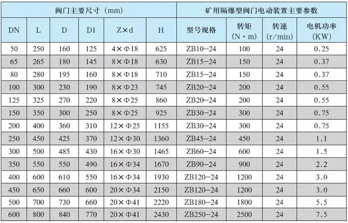 三、DN150矿用隔爆型电动法兰闸阀产品产品参数: